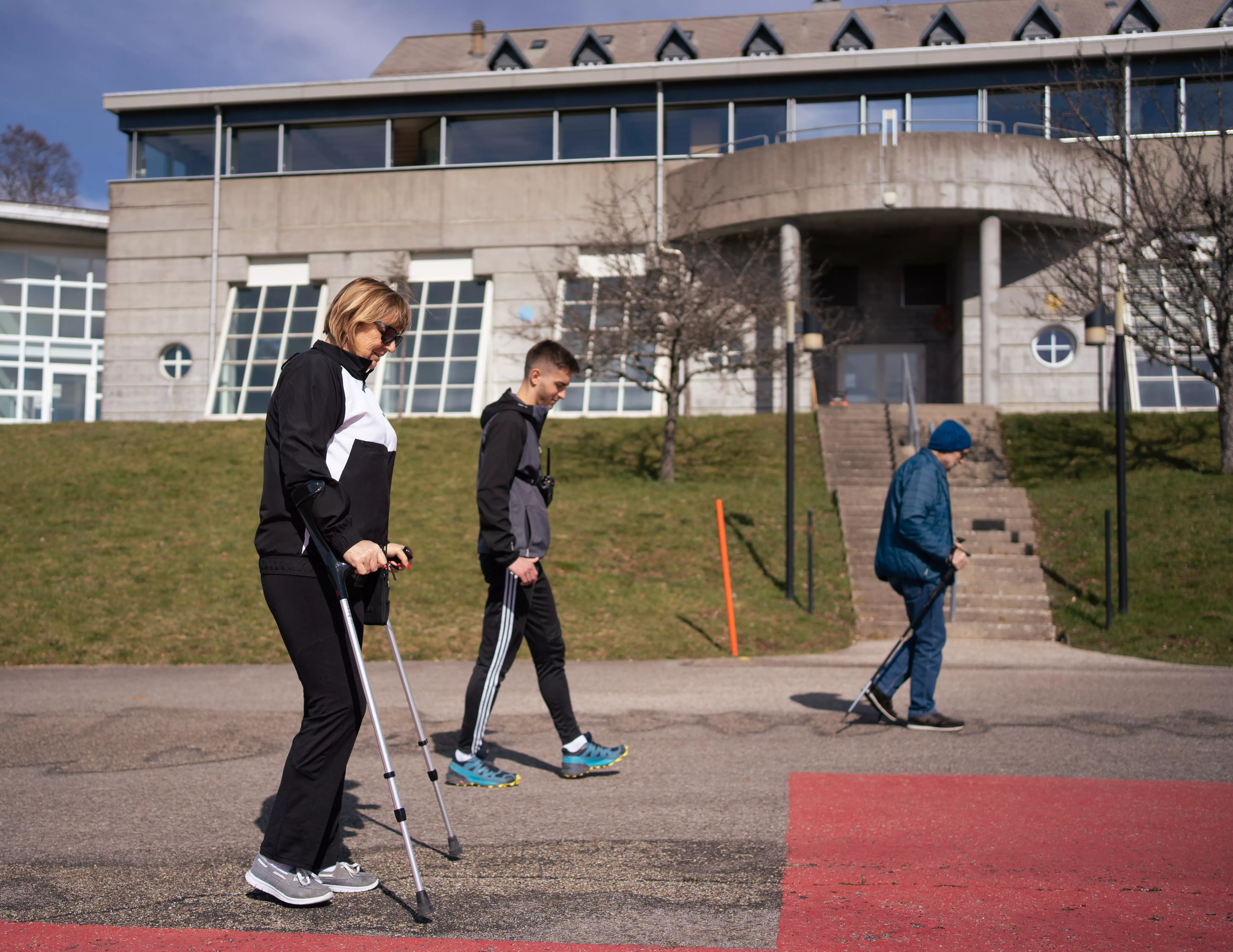Le reconditionnement physique est au cœur de notre philosophie de soins. Au fil des thérapies, les patients prennent ainsi conscience des possibilités de leur corps, dans le plaisir du mouvement et par l'apprentissage des limites personnelles.